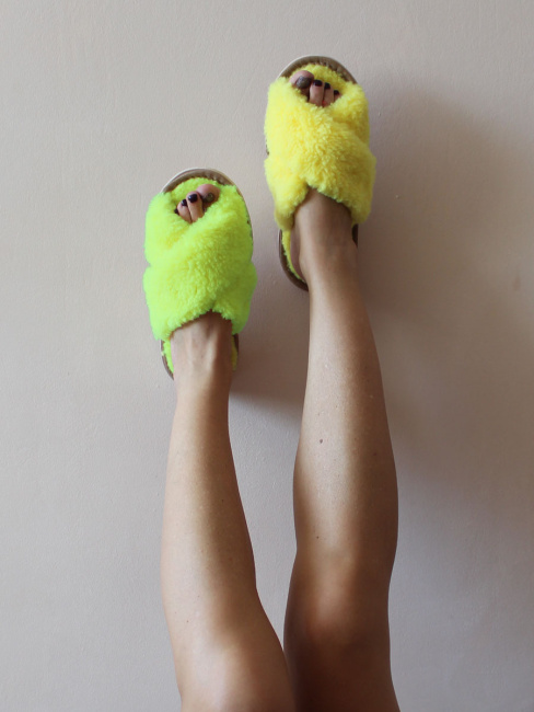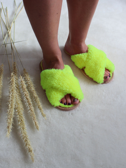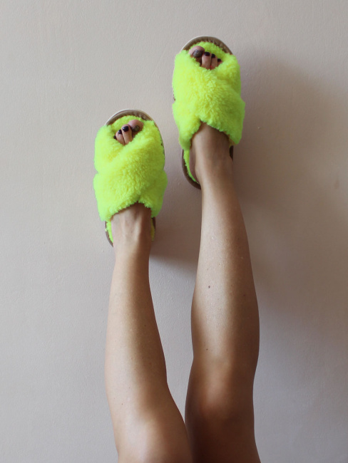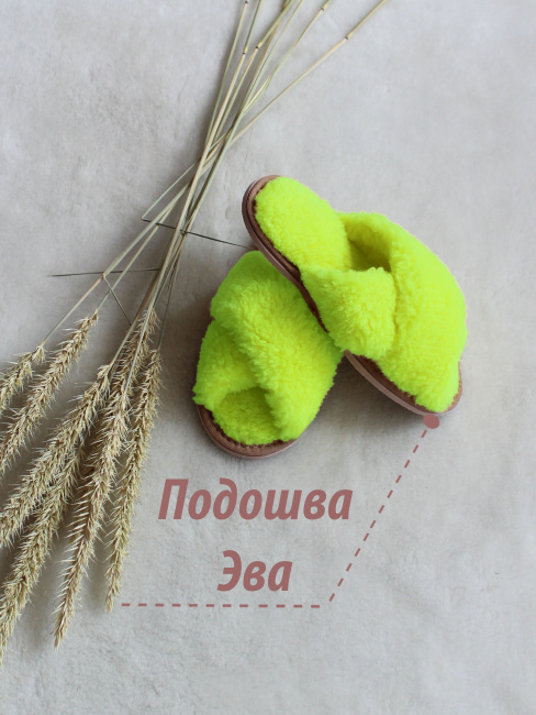 Обувь домашняя пантолеты (тапки) LANATEX из натуральной овечьей шерсти. Подошва - ЭВА. Цвет ярко-салатовый. Арт. 22104