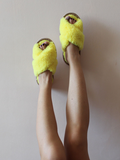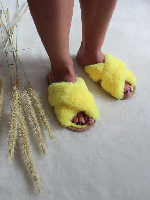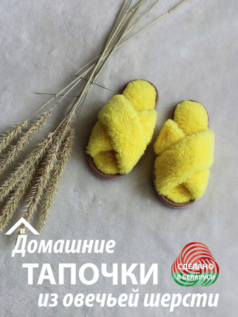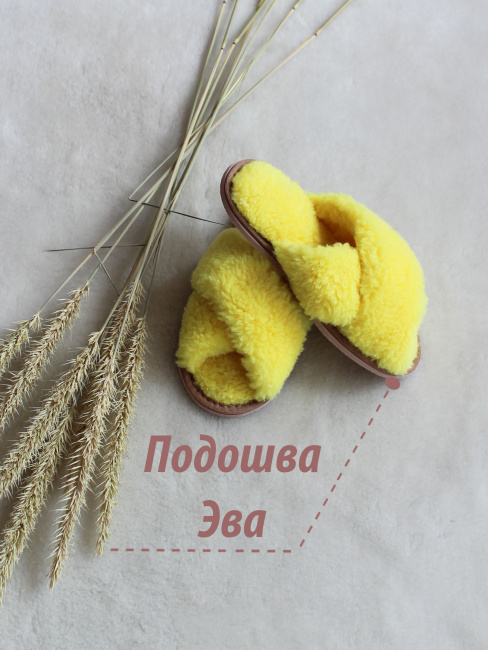 Обувь домашняя пантолеты (тапки) LANATEX из натуральной овечьей шерсти. Подошва - ЭВА. Цвет желтый. Арт. 22107