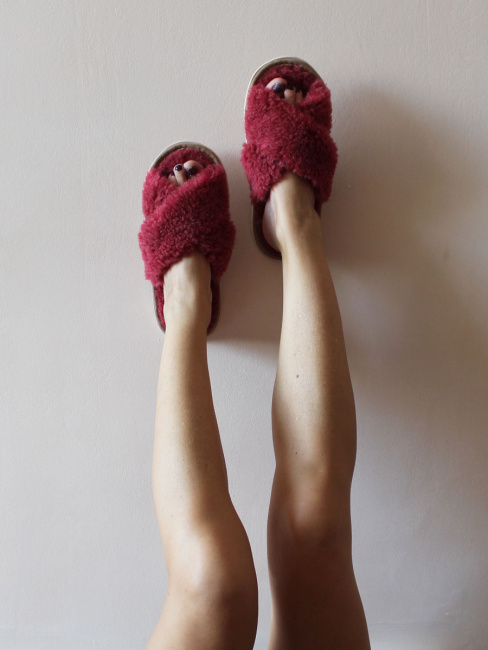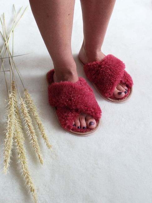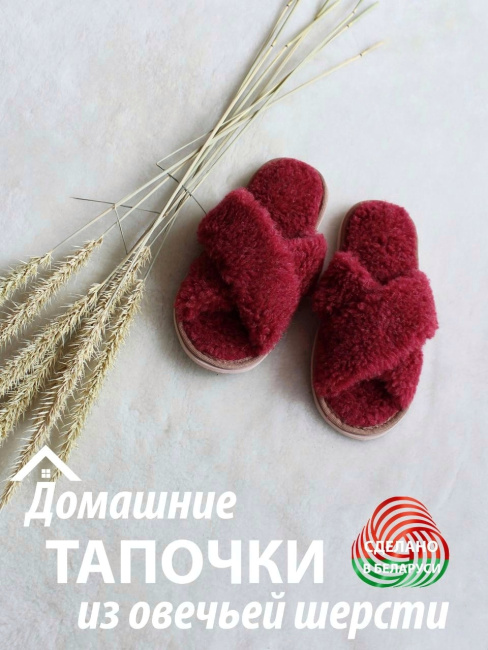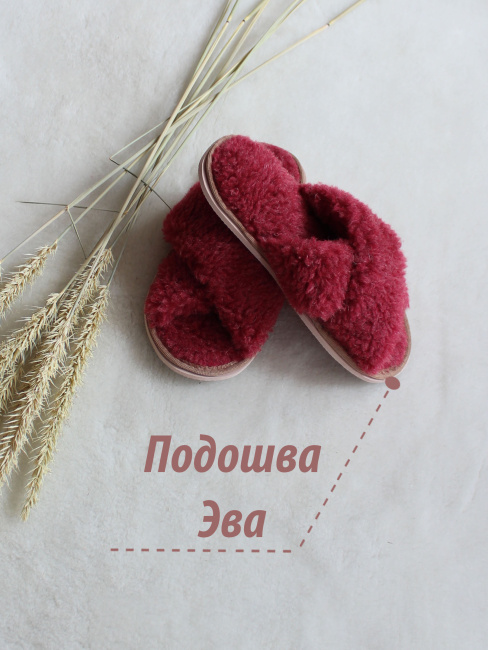 Обувь домашняя пантолеты (тапки) LANATEX из натуральной овечьей шерсти. Подошва - ЭВА. Цвет бордовый. Арт. 22110