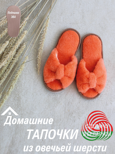 Тапочки домашние из натуральной овечьей шерсти на ЭВА подошве обладают прекрасной терморегуляцией, расслабляющим и массажным эффектом, не раздражают кожу, гипоаллергенны. Уютные тапочки женские из натуральной овечьей шерсти - отлично сохраняют тепло, но при этом позволяют коже дышать, благодаря этому в них не холодно зимой и не жарко летом. Тапочки домашние женские из натуральной овчины на ЭВА подошве, практичны в носке и долговечны (несколько сезонов в тепле и уюте вам обеспечены). Благодаря своим непревзойденным свойствам, тапочки женские домашние станут лучшим подарком для любимых, а так же маме, дочке, бабушке и коллеге. Шерстяные тапочки - это не заменимая обувь для дома и дачи, в гостях, а так же в командировках, в роддоме и больнице. Наши домашние тапочки - это идеальный подарок на праздники: Новый Год, 8 Марта, День Влюбленных, День Рождения. Особая энергетика изделий из натуральной шерсти известна с давних времен. Ведь у животных забирают шерсть, не отнимая жизни, поэтому она несет только положительный заряд! Уход за изделиями из натуральной шерсти: рекомендуется ручная деликатная стирка при t не выше 30 С, без отбеливающих средств, без глажения, сушить изделия необходимо вдали от отопительных приборов и попадания прямых солнечных лучей, расчесать после высыхания. Коллектив ЛанатэксБел будет рад обратной связи, в ваших отзывах и вопросах, наши дорогие покупатели, ведь тем самым вы, поможете стать нам еще лучше для вас.