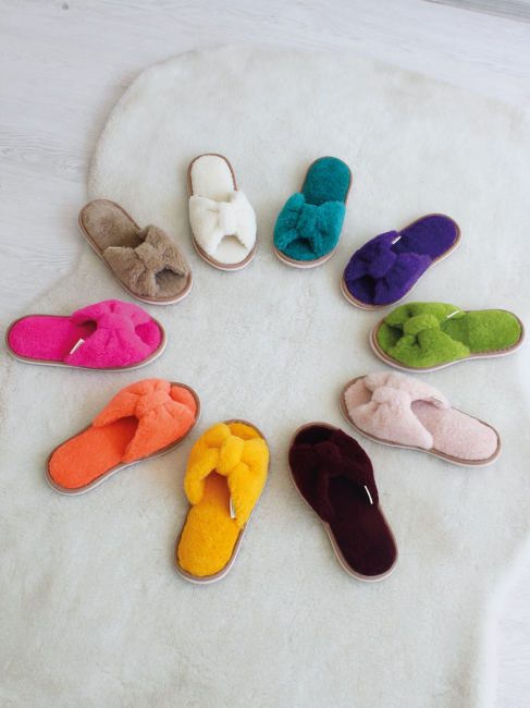 Тапочки домашние из натуральной овечьей шерсти на ЭВА подошве обладают прекрасной терморегуляцией, расслабляющим и массажным эффектом, не раздражают кожу, гипоаллергенны. Уютные тапочки женские из натуральной овечьей шерсти - отлично сохраняют тепло, но при этом позволяют коже дышать, благодаря этому в них не холодно зимой и не жарко летом. Тапочки домашние женские из натуральной овчины на ЭВА подошве, практичны в носке и долговечны (несколько сезонов в тепле и уюте вам обеспечены). Благодаря своим непревзойденным свойствам, тапочки женские домашние станут лучшим подарком для любимых, а так же маме, дочке, бабушке и коллеге. Шерстяные тапочки - это не заменимая обувь для дома и дачи, в гостях, а так же в командировках, в роддоме и больнице. Наши домашние тапочки - это идеальный подарок на праздники: Новый Год, 8 Марта, День Влюбленных, День Рождения. Особая энергетика изделий из натуральной шерсти известна с давних времен. Ведь у животных забирают шерсть, не отнимая жизни, поэтому она несет только положительный заряд! Уход за изделиями из натуральной шерсти: рекомендуется ручная деликатная стирка при t не выше 30 С, без отбеливающих средств, без глажения, сушить изделия необходимо вдали от отопительных приборов и попадания прямых солнечных лучей, расчесать после высыхания. Коллектив ЛанатэксБел будет рад обратной связи, в ваших отзывах и вопросах, наши дорогие покупатели, ведь тем самым вы, поможете стать нам еще лучше для вас.