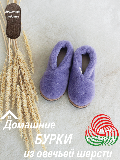 Бурки из натуральной овечьей шерсти на войлочной подошве обладают прекрасной терморегуляцией, расслабляющим и массажным эффектом, не раздражают кожу, гипоаллергенны. Уютные бурки из натуральной овечьей шерсти - отлично сохраняют тепло, но при этом позволяют коже дышать, благодаря этому в них не холодно зимой и не жарко летом. Этот универсальный вариант домашних бурок идеально подойдет как мужчинам так женщинам и детям. Чуни на войлочной подошве, практичны в носке и долговечны (несколько сезонов в тепле и уюте вам обеспечены). Благодаря своим непревзойденным свойствам, чуни станут лучшим подарком для любимых, а так же маме, папе, бабушке и дедушке. Шерстяные уги - это не заменимая обувь для дома и дачи, в гостях, а так же в командировках, в роддоме и больнице. Наши уги - это идеальный подарок на праздники: Новый Год, 8 Марта, 23 Февраля, День Влюбленных, День Рождения. Особая энергетика изделий из натуральной шерсти известна с давних времен. Ведь у животных забирают шерсть, не отнимая жизни, поэтому она несет только положительный заряд!Уход за изделиями из натуральной шерсти: рекомендуется ручная деликатная стирка при t не выше 30 С, без отбеливающих средств, без глажения, сушить изделия необходимо вдали от отопительных приборов и попадания прямых солнечных лучей, расчесать после высыхания.Коллектив ЛанатэксБел будет рад обратной связи, в ваших отзывах и вопросах, наши дорогие покупатели, ведь тем самым вы, поможете стать нам еще лучше для вас.