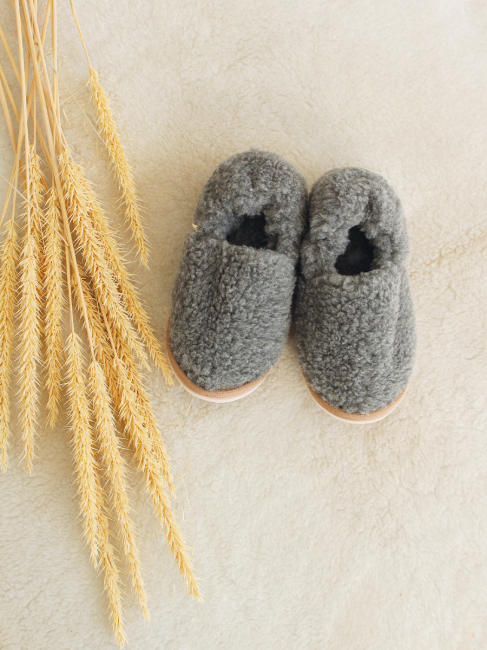 Обувь домашняя ботинки (бурки) LANATEX из натуральной овечьей шерсти. Подошва - ЭВА. Цвет серый. Мод. 163 Арт. 22101