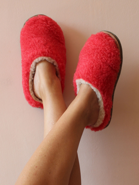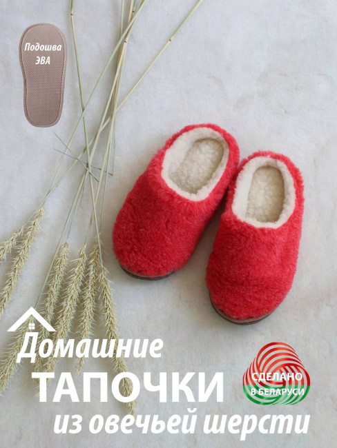 Тапочки домашние из натуральной овечьей шерсти двухцветные с приподнятой пяткой на ЭВА подошве обладают прекрасной терморегуляцией, расслабляющим и массажным эффектом, не раздражают кожу, гипоаллергенны. Уютные тапочки из натуральной овечьей шерсти - отлично сохраняют тепло, но при этом позволяют коже дышать, благодаря этому в них не холодно зимой и не жарко летом. Этот универсальный вариант домашних тапочек идеально подойдет как мужчинам так женщинам и детям. Тапочки на ЭВА подошве, практичны в носке и долговечны (несколько сезонов в тепле и уюте вам обеспечены). Благодаря своим непревзойденным свойствам, тапочки из натуральной овчины станут лучшим подарком для любимых, а так же маме, папе, бабушке и дедушке. Шерстяные тапочки - это не заменимая обувь для дома и дачи, в гостях, а так же в командировках, в роддоме и больнице. Наши домашние тапочки - это идеальный подарок на праздники: Новый Год, 8 Марта, 23 Февраля, День Влюбленных, День Рождения. Особая энергетика изделий из натуральной шерсти известна с давних времен. Ведь у животных забирают шерсть, не отнимая жизни, поэтому она несет только положительный заряд! Уход за изделиями из натуральной шерсти: рекомендуется ручная деликатная стирка при t не выше 30 С, без отбеливающих средств, без глажения, сушить изделия необходимо вдали от отопительных приборов и попадания прямых солнечных лучей, расчесать после высыхания.