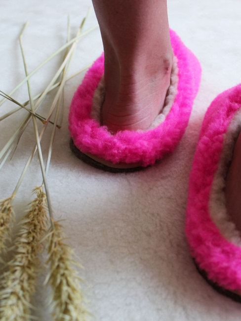 Тапочки домашние из натуральной овечьей шерсти двухцветные с приподнятой пяткой на войлочной подошве обладают прекрасной терморегуляцией, расслабляющим и массажным эффектом, не раздражают кожу, гипоаллергенны. Уютные тапочки из натуральной овечьей шерсти - отлично сохраняют тепло, но при этом позволяют коже дышать, благодаря этому в них не холодно зимой и не жарко летом. Этот универсальный вариант домашних тапочек идеально подойдет как мужчинам так женщинам и детям. Тапочки на войлочной подошве, практичны в носке и долговечны (несколько сезонов в тепле и уюте вам обеспечены). Благодаря своим непревзойденным свойствам, тапочки из натуральной овчины станут лучшим подарком для любимых, а так же маме, папе, бабушке и дедушке. Шерстяные тапочки - это не заменимая обувь для дома и дачи, в гостях, а так же в командировках, в роддоме и больнице. Наши домашние тапочки - это идеальный подарок на праздники: Новый Год, 8 Марта, 23 Февраля, День Влюбленных, День Рождения. Особая энергетика изделий из натуральной шерсти известна с давних времен. Ведь у животных забирают шерсть, не отнимая жизни, поэтому она несет только положительный заряд! Уход за изделиями из натуральной шерсти: рекомендуется ручная деликатная стирка при t не выше 30 С, без отбеливающих средств, без глажения, сушить изделия необходимо вдали от отопительных приборов и попадания прямых солнечных лучей, расчесать после высыхания.
