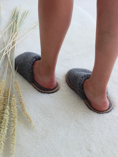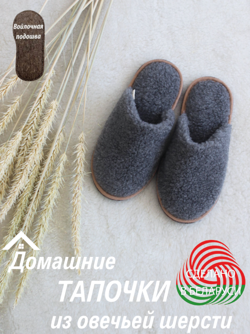 Тапочки домашние из натуральной овечьей шерсти на войлок подошве обладают прекрасной терморегуляцией, расслабляющим и массажным эффектом, не раздражают кожу, гипоаллергенны. Уютные тапочки женские из натуральной овечьей шерсти - отлично сохраняют тепло, но при этом позволяют коже дышать, благодаря этому в них не холодно зимой и не жарко летом. Тапочки домашние женские из натуральной овчины на ЭВА подошве, практичны в носке и долговечны (несколько сезонов в тепле и уюте вам обеспечены). Благодаря своим непревзойденным свойствам, тапочки женские домашние станут лучшим подарком для любимых, а так же маме, дочке, бабушке и коллеге. Шерстяные тапочки - это не заменимая обувь для дома и дачи, в гостях, а так же в командировках, в роддоме и больнице. Наши домашние тапочки - это идеальный подарок на праздники: Новый Год, 8 Марта, День Влюбленных, День Рождения. Особая энергетика изделий из натуральной шерсти известна с давних времен. Ведь у животных забирают шерсть, не отнимая жизни, поэтому она несет только положительный заряд! Уход за изделиями из натуральной шерсти: рекомендуется ручная деликатная стирка при t не выше 30 С, без отбеливающих средств, без глажения, сушить изделия необходимо вдали от отопительных приборов и попадания прямых солнечных лучей, расчесать после высыхания. Коллектив ЛанатэксБел будет рад обратной связи, в ваших отзывах и вопросах, наши дорогие покупатели, ведь тем самым вы, поможете стать нам еще лучше для вас.