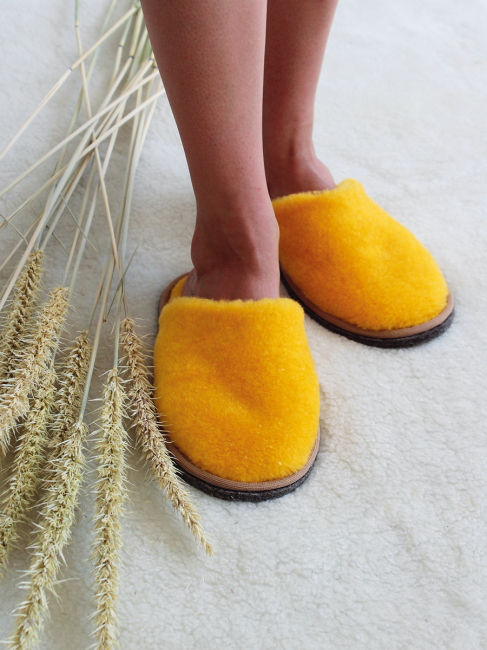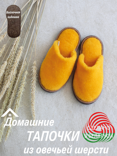Тапочки домашние из натуральной овечьей шерсти на войлок подошве обладают прекрасной терморегуляцией, расслабляющим и массажным эффектом, не раздражают кожу, гипоаллергенны. Уютные тапочки женские из натуральной овечьей шерсти - отлично сохраняют тепло, но при этом позволяют коже дышать, благодаря этому в них не холодно зимой и не жарко летом. Тапочки домашние женские из натуральной овчины на ЭВА подошве, практичны в носке и долговечны (несколько сезонов в тепле и уюте вам обеспечены). Благодаря своим непревзойденным свойствам, тапочки женские домашние станут лучшим подарком для любимых, а так же маме, дочке, бабушке и коллеге. Шерстяные тапочки - это не заменимая обувь для дома и дачи, в гостях, а так же в командировках, в роддоме и больнице. Наши домашние тапочки - это идеальный подарок на праздники: Новый Год, 8 Марта, День Влюбленных, День Рождения. Особая энергетика изделий из натуральной шерсти известна с давних времен. Ведь у животных забирают шерсть, не отнимая жизни, поэтому она несет только положительный заряд! Уход за изделиями из натуральной шерсти: рекомендуется ручная деликатная стирка при t не выше 30 С, без отбеливающих средств, без глажения, сушить изделия необходимо вдали от отопительных приборов и попадания прямых солнечных лучей, расчесать после высыхания. Коллектив ЛанатэксБел будет рад обратной связи, в ваших отзывах и вопросах, наши дорогие покупатели, ведь тем самым вы, поможете стать нам еще лучше для вас.