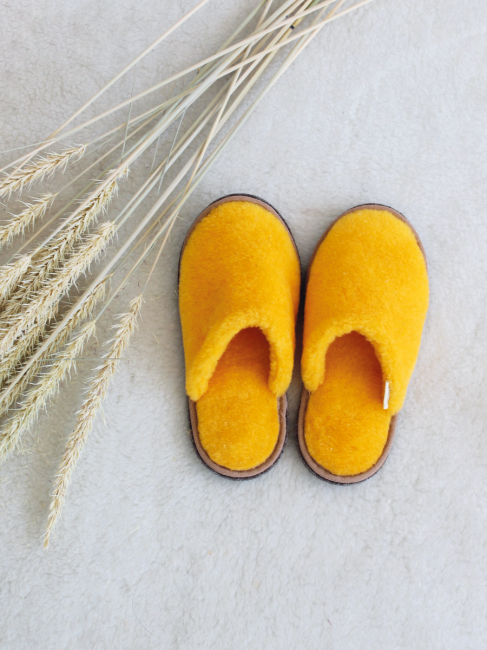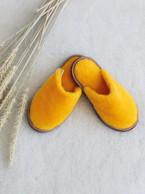 Обувь домашняя пантолеты(тапки) LANATEX модель 167, цвет- желтый,  материал верха - текстиль, подошва - войлок