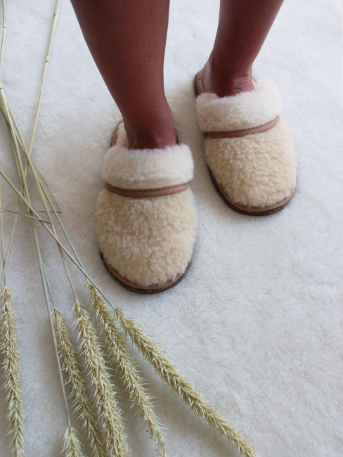 Обувь домашняя пантолеты (тапки) LANATEX из натуральной овечьей шерсти. Арт. 2163