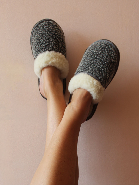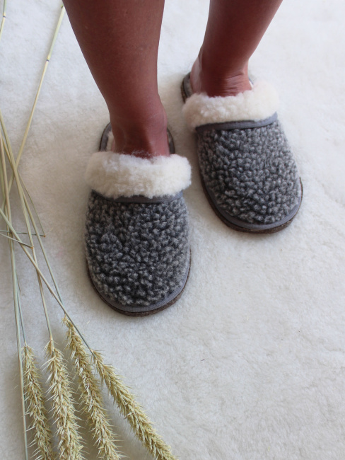 Обувь домашняя пантолеты (тапки) LANATEX из натуральной овечьей шерсти. Подошва - войлок. Цвет серый. Арт. 2164