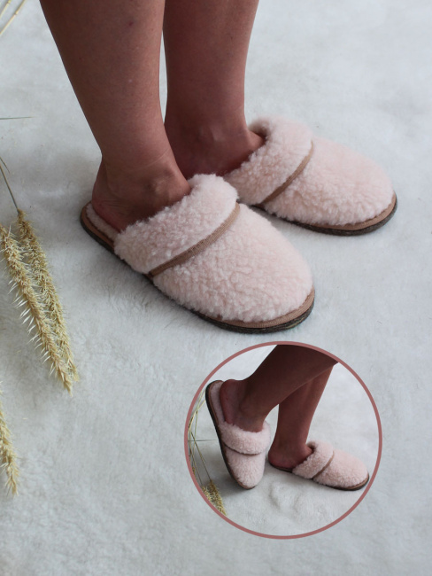 Обувь домашняя пантолеты (тапки) LANATEX из натуральной овечьей шерсти. Подошва - войлок. Цвет пудровый. Арт. 2287