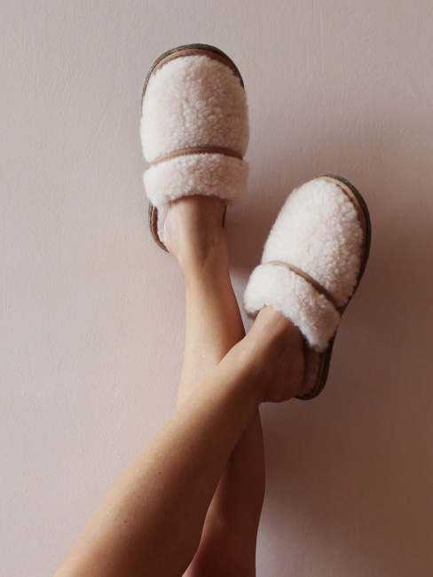 Обувь домашняя пантолеты (тапки) LANATEX из натуральной овечьей шерсти. Арт. 2287