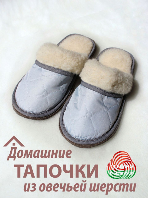 Тапочки домашние из натуральной овечьей шерсти на войлочной подошве с верхом из стеганой ткани обладают прекрасной терморегуляцией, расслабляющим и массажным эффектом, не раздражают кожу, гипоаллергенны. Уютные тапочки из натуральной овечьей шерсти - отлично сохраняют тепло, но при этом позволяют коже дышать, благодаря этому в них не холодно зимой и не жарко летом. Этот универсальный вариант домашних тапочек идеально подойдет как мужчинам так женщинам и детям. Тапочки из натуральной овчины на войлочной подошве, практичны в носке и долговечны (несколько сезонов в тепле и уюте вам обеспечены). Благодаря своим непревзойденным свойствам, домашние тапочки станут лучшим подарком для любимых, а так же маме, папе, бабушке и дедушке. Шерстяные тапочки - это не заменимая обувь для дома и дачи, в гостях, а так же в командировках, в роддоме и больнице. Наши тапочки - это идеальный подарок на праздники: Новый Год, 8 Марта, 23 Февраля, День Влюбленных, День Рождения. Особая энергетика изделий из натуральной шерсти известна с давних времен. Ведь у животных забирают шерсть, не отнимая жизни, поэтому она несет только положительный заряд! Уход за изделиями из натуральной шерсти: рекомендуется ручная деликатная стирка при t не выше 30 С, без отбеливающих средств, без глажения, сушить изделия необходимо вдали от отопительных приборов и попадания прямых солнечных лучей, расчесать после высыхания. Коллектив ЛанатэксБел будет рад обратной связи, в ваших отзывах и вопросах, наши дорогие покупатели, ведь тем самым вы, поможете стать нам еще лучше для вас.