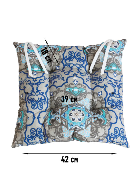 Подушка для сидения LANATEX — это незаменимый элемент декора для любого стула, с помощью нашей подушки для сидения вы сможете преобразить ваш интерьер дополнительным текстилем, защитить поверхность стула от преждевременного изнашивания, а также менять подушечки на другие, просто развязав их. Подушка декоративная на стул с мягким полиэфирным наполнителем, обеспечит вам дополнительный комфорт при сидении, так как данный вид наполнителя отличается упругостью и эластичностью, изделие длительное время будет сохранять свою первоначальную форму. Чехол подушки выполнен из дублированного синтепоном поликоттона стеганого по технологии ULTRA SONIC (ультразвук) с эффектным и суперпрочным узором. Подушка декорирована четырьмя закрепками, благодаря чему имеет такую рельефную форму. Для транспортировки продукция может прессоваться и приходить к покупателю в плоском виде. После вскрытия герметичной упаковки, товар приобретает нужный вид. Для лучшего эффекта необходимо взбить изделие. Изделие можно стирать при температуре 40 градусов.