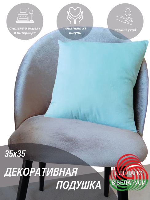 Подушки декоративные от LANATEX это лучший выбор. Так как правильно подобранная подушка способна стать главным стилеобразующим элементом интерьера, его визитной карточкой и точкой визуального притяжения. Наша декоративная подушка поможет достичь подобного эффекта. Подушки для дивана будут органично смотреться на детской мебели. Подушки декоративные 35х35 с размером чехла, по факту в готовом виде имеют форму квадрата со сторонами 33х33 см. Интерьерная бархатная подушка не только гармонично смотрится на диване, ее можно так же использовать для повышения удобства на подоконник, на изголовье кровати, на пуфик или на кресло, под поясницу. Аксессуары для спальни, гостиной просто необходимы для ценителей домашнего уюта. Классическая мебельная подушка думка широко используется вместо стульев для размещения людей вокруг стола при приеме пищи. Подушка декоративная состоит из несъемного бархатного чехла и упругого наполнителя из высококачественного силиконизированного полиэфирного волокна. Мы предлагаем широкий выбор цветовой гаммы на любой вкус. Стильный декор подушки на кровать выглядит дорого за счет бархатной текстуры и быстро восстанавливает форму после доставки в вакуумной упаковке. Благодаря бархатистому материалу, подушка устойчива к износу и прослужит долгие годы. Ваша гостиная преобразится на глазах, с домашним текстилем от LANATEX так просто расставить акценты в интерьере, обновить и освежить его. Для транспортировки продукция может прессоваться и приходить к покупателю в плоском виде. После вскрытия герметичной упаковки, товар приобретает нужный вид. Для лучшего эффекта - взбить.