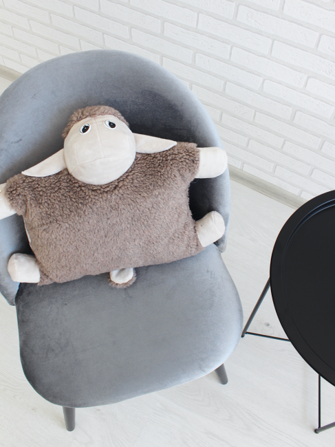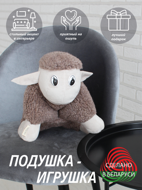 Декоративная подушка - игрушка БАРАШЕК - невероятно милая, мягкая, нежная игрушка подушка с ножками и смешной мордашкой. Интерьерная подушка - игрушка LANATEX станет прекрасным украшением детской комнаты и любимым другом ребёнка, а так же оригинальным декоративным элементом вашей гостиной. Такая оригинальная подушка - игрушка с приятной мордочкой будет положительно влиять на эмоциональное развитие и фантазию ребенка. Подушка для детей и взрослых изготовлена из экомеха в составе которого - натуральная овечья шерсть. Мех приятный на ощупь. В качестве наполнителя используется воздушный, гипоаллергенный, силиконизированный холлофайбер. Декоративная игрушка - подушка плотно набита - она упругая и хорошо держит форму. Подушку - игрушку можно брать с собой в поездки, ведь она отлично выполняет функции подушки. Подушку можно стирать при температуре 30 градусов в щадящем режиме. Особенности: - можно стирать при температуре 30 градусов в щадящем режиме.