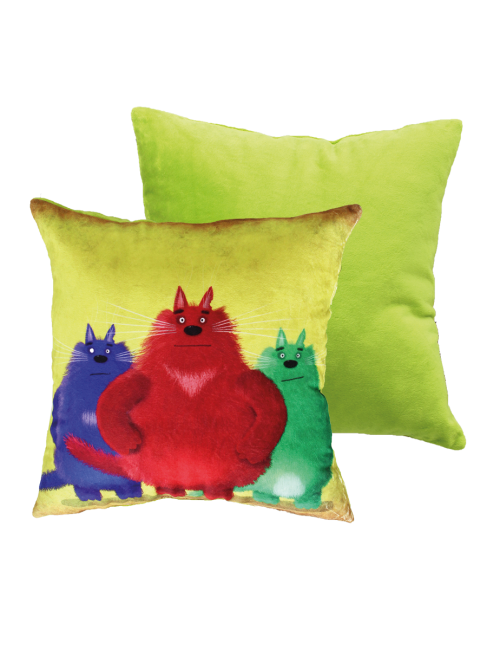 Подушка декоративная LANATEX "Кис" модель 0348, артикул 22295, размер 35*35*14, цвет ярко-желтый, салатовый.