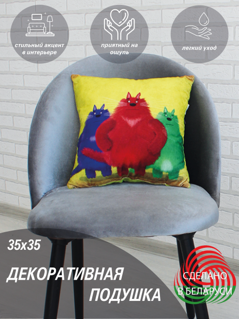 Подушки декоративные от LANATEX с веселыми принтами - это лучший выбор. Так как правильно подобранная подушка способна стать главным стилеобразующим элементом интерьера, его визитной карточкой и точкой визуального притяжения. Наша декоративная подушка поможет достичь подобного эффекта. Подушки для дивана будут органично смотреться на детской мебели. Подушки декоративные 35х35 с размером чехла, по факту в готовом виде имеют форму квадрата со сторонами 33х33 см. Интерьерная бархатная подушка не только гармонично смотрится на диване, ее можно так же использовать для повышения удобства на подоконник, на изголовье кровати, на пуфик или на кресло, под поясницу. Аксессуары для спальни, гостиной просто необходимы для ценителей домашнего уюта. Классическая мебельная подушка думка широко используется вместо стульев для размещения людей вокруг стола при приеме пищи. Подушка декоративная состоит из несъемного бархатного чехла и упругого наполнителя из высококачественного силиконизированного полиэфирного волокна. Мы предлагаем широкий выбор цветовой гаммы на любой вкус. Стильный декор подушки на кровать выглядит дорого за счет бархатной текстуры и быстро восстанавливает форму после доставки в вакуумной упаковке. Благодаря бархатистому материалу, подушка устойчива к износу и прослужит долгие годы. Ваша гостиная преобразится на глазах, с домашним текстилем от LANATEX так просто расставить акценты в интерьере, обновить и освежить его. Для транспортировки продукция может прессоваться и приходить к покупателю в плоском виде. После вскрытия герметичной упаковки, товар приобретает нужный вид. Для лучшего эффекта - взбить.