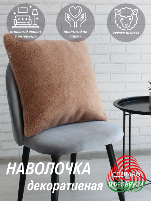 Наволочка декоративная LANATEX – это очень простая и функциональная деталь в интерьере дома. Предназначенная для декора она создаёт уютную домашнюю атмосферу. Является украшением комнаты. Применяется для декорирования и привнесения красоты в помещение. Мягкая подушечка на диван будет очень уместна при просмотре фильма во время отдыха. Её удобно положить в кресло для создания дополнительного комфорта. В детской комнате это непременный атрибут в качестве подушки – обнимашки. Наволочка декоративная станет отличным подарком. Чехол изделия - приятный на ощупь натуральный трикотажный мех из овечьей шерсти. В народной медицине уже давно подмечены лечебные свойства натуральной шерсти, изделия из натуральной овечьей шерсти не только согревают, но и благоприятно действуют на организм человека. Уход за изделиями из натуральной шерсти: рекомендуется ручная деликатная стирка при t не выше 30 С, без отбеливающих средств, без глажения, сушить изделия необходимо вдали от отопительных приборов и попадания прямых солнечных лучей, расчесать после высыхания. Коллектив ЛанатэксБел будет рад обратной связи, в ваших отзывах и вопросах, наши дорогие покупатели, ведь тем самым вы, поможете стать нам еще лучше для вас.