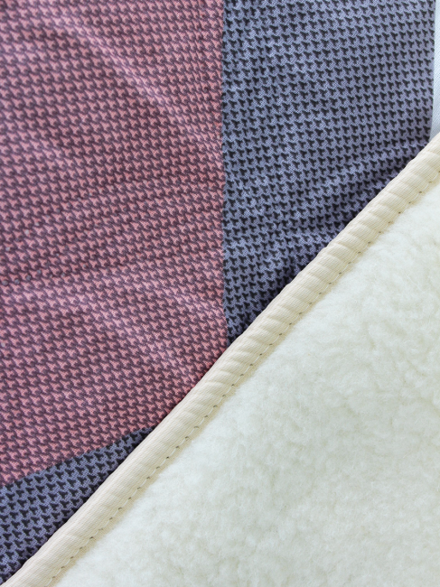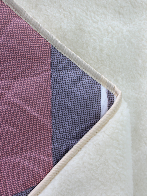Одеяло (плед) LANATEX из натуральной овечьей шерсти. Состав ворса: шерсть 80%, лавсан 20%, материал верха: ткань поликоттон. Размер 145*205см. Арт. 011 молочный, фиолетовый.