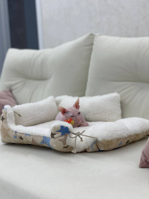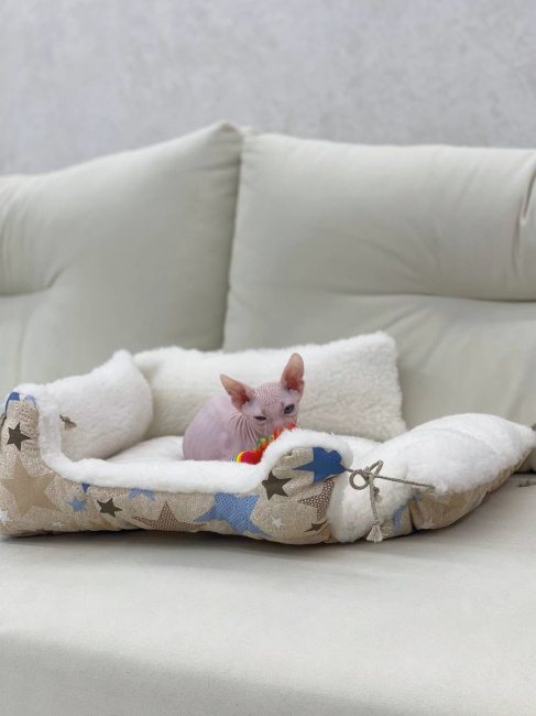 Лежак для животных LANATEX модель 170, артикул 22179, размер 38*36*15 , цвет св.бежевый (звезды, на завязках)