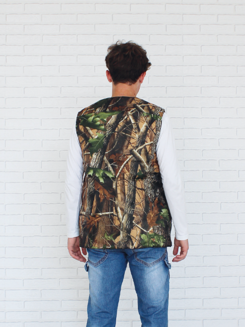 Жилет мужской LANATEX из плащевой ткани КМФ с подкладкой из натуральной овечьей шерсти (два кармана). Арт. 826