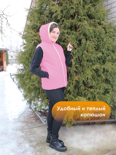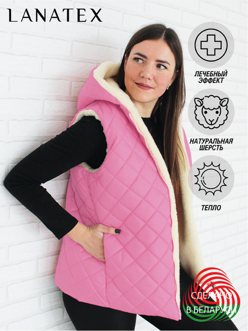 Женская жилетка с капюшоном LANATEX - базовый элемент гардероба на любое время года. Жилет женский на молнии входит в линейку модных вещей для женщин. Ткань верха плащевка с водоотталкивающим покрытием, в качестве подкладки используется мех из натуральной овечьей шерсти. Жилетка из овечьей шерсти подойдёт на рост 158-175 см. Теплый меховой жилет для женщин можно надевать на любую одежду - водолазку, кофту, блузку, джемпер. Ходите в жакете женском с мехом на работу, носите на даче, работайте в нем в саду, прогуливайтесь вечером или наслаждайтесь отдыхом на природе. В народной медицине уже давно подмечены лечебные свойства шерсти, жилеты из натуральной овечьей шерсти не только согревают, но и благоприятно действуют на организм человека. Мягкая, экологичная и теплая, но при этом очень легкая классическая жилетка будет незаменима для офиса или дома. Натуральная шерсть, капюшон и большие карманы женского жилета из натуральной овчины, не дадут вам замерзнуть в холодное время года. Элегантный свободный крой и прямой силуэт, этого мехового жакета подойдет для любой фигуры. Безрукавка идеально подойдет для офисных и повседневных образов и как одежда для дома. Классический жилет лучше носить как верхний слой. Теплые, большие карманы жилета, согреют руки и сохранят телефон. Большие размеры безрукавки женской, позволят укутать нежным теплом, любую женщину. Жилет с карманами, теплый, полезный подарок маме на 8 марта, милый подарок девушке на день рождения, лечебный подарок бабушке на юбилей. Стирать рекомендуем вручную в воде не выше +30 С, без отбеливающих средств, без глажения, сушить изделия необходимо вдали от отопительных приборов и попадания прямых солнечных лучей, расчесать после высыхания. Коллектив ЛанатэксБел будет рад обратной связи, в ваших отзывах и вопросах, наши дорогие покупатели, ведь тем самым вы, поможете стать нам еще лучше для вас. Стильный меховой жилет без рукавов, универсальная офисная одежда для женщин, любящих комфорт, уют и натуральные материалы.