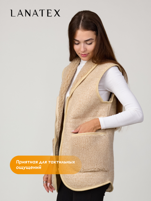 Женская т. бежевая жилетка из натуральной овечьей шерсти - нужная вещь на любое время года для каждого человека.