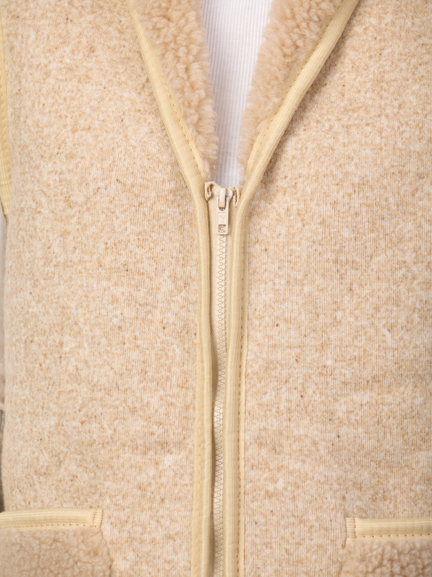 Теплая и приятная к телу. В составе ворса натуральная овечья шерсть. Жилет из шерсти спасет в зимний мороз и в прохладный осенний вечер.