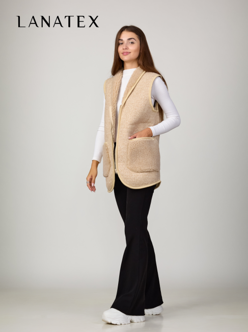 Жилет женский LANATEX модель 249, артикул 22431, цвет бежевый. Размеры сдвоенные 44-46 48-50 52-54 56-58 60-62